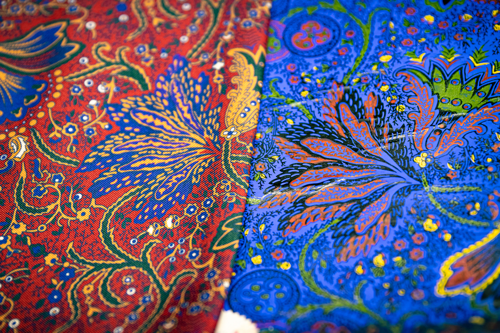 Bespoke designs are hand printed on to fabric with great precision by our team of highly skilled printers, using our own in-house produced dyes.